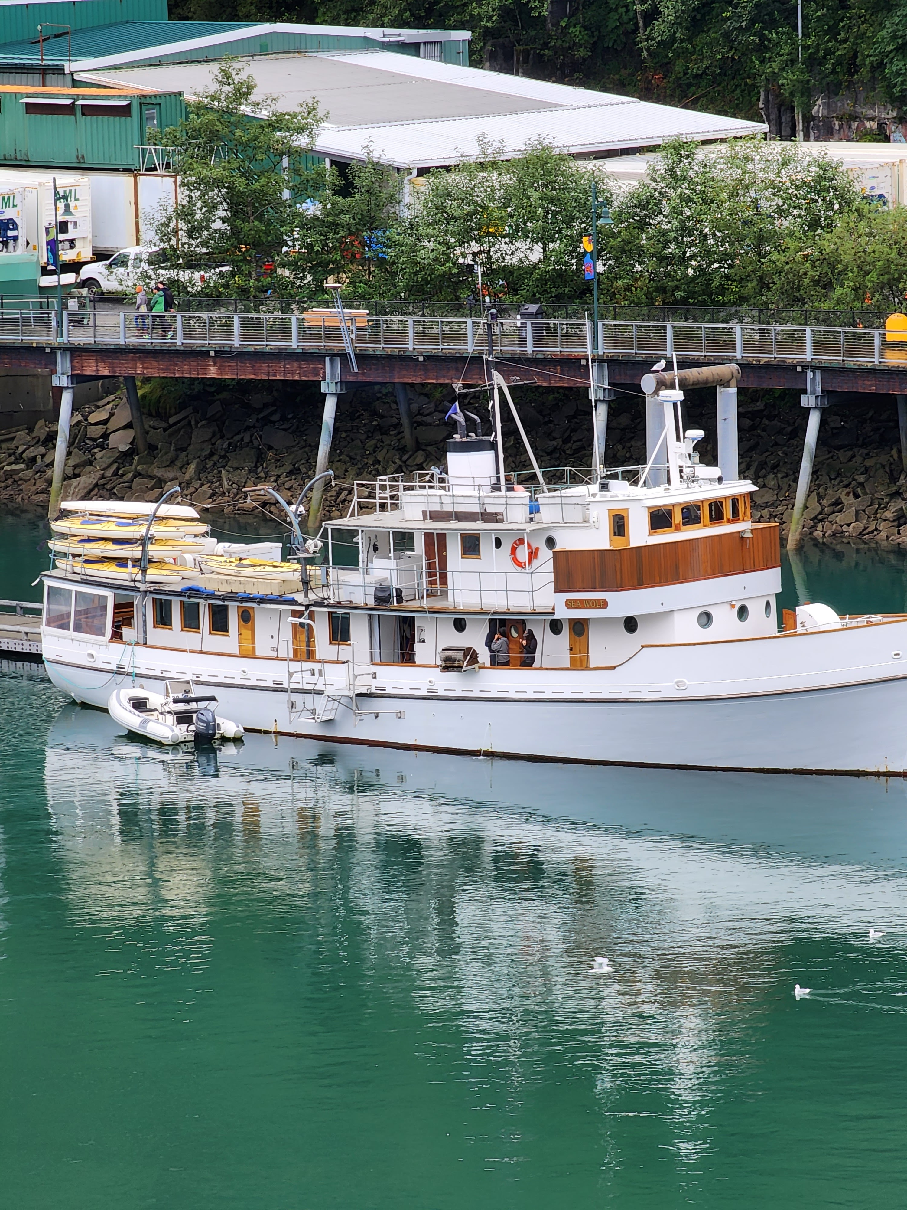 By the time we arrived at the mouth of the harbour the winds and waves had dropped a bit. Our captain said he would give it a try if the harbour master okayed the docking. We waited with bated breath until we were given the okay. It did take much longer to dock, but at least we got to see what we could of Ketchikan.
